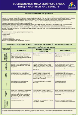 Стенд на баннерной основе «Исследование мяса убойного скота, птиц и кроликов на свежесть» предназначен для изучения методов оценки свежести мясной продукции.