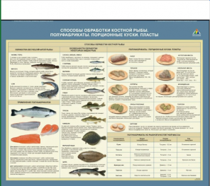 Стенд «Способы обработки костной рыбы. Полуфабрикаты. Порционные куски. Пласты» предназначен для изучения технологий обработки костной рыбы, а также для ознакомления с рыбными полуфабрикатами, порционными кусками и пластами.