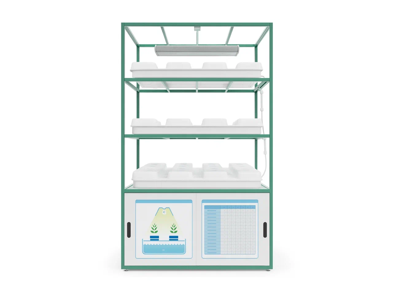 Гидропонная установка предназначена для наглядного изучения принципов гидропонного выращивания растений методом периодического затопления. Она позволяет демонстрировать ключевые этапы агротехники, работу автоматизированных систем и влияние параметров среды на рост культур. Представляет собой установку с цикличным заполнением лотка с растениями питательным раствором и последующем его сливе обратно в резервуар.