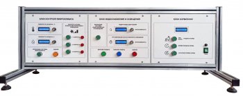 Управление лабораторным стендом осуществляется с помощью кнопок и вращающихся рукояток на блоках управления. Включение стенда производится нажатием клавиши «Сеть», после чего подсвечиваются дисплеи и сигнальные лампы, например: