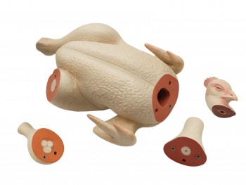 Макет рассчитан на демонстрацию и практическое изучение технологии кулинарной разделки курицы: он разбирается на отдельные части, соответствующие основным элементам туши.