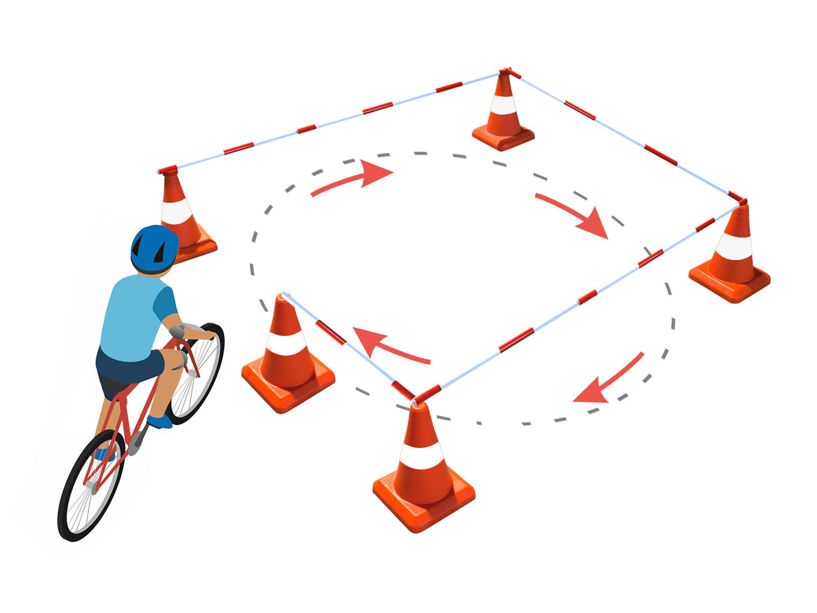 Предназначен для проверки навыков управления велосипедом при движении по ограниченному маршруту с резкими поворотами.
