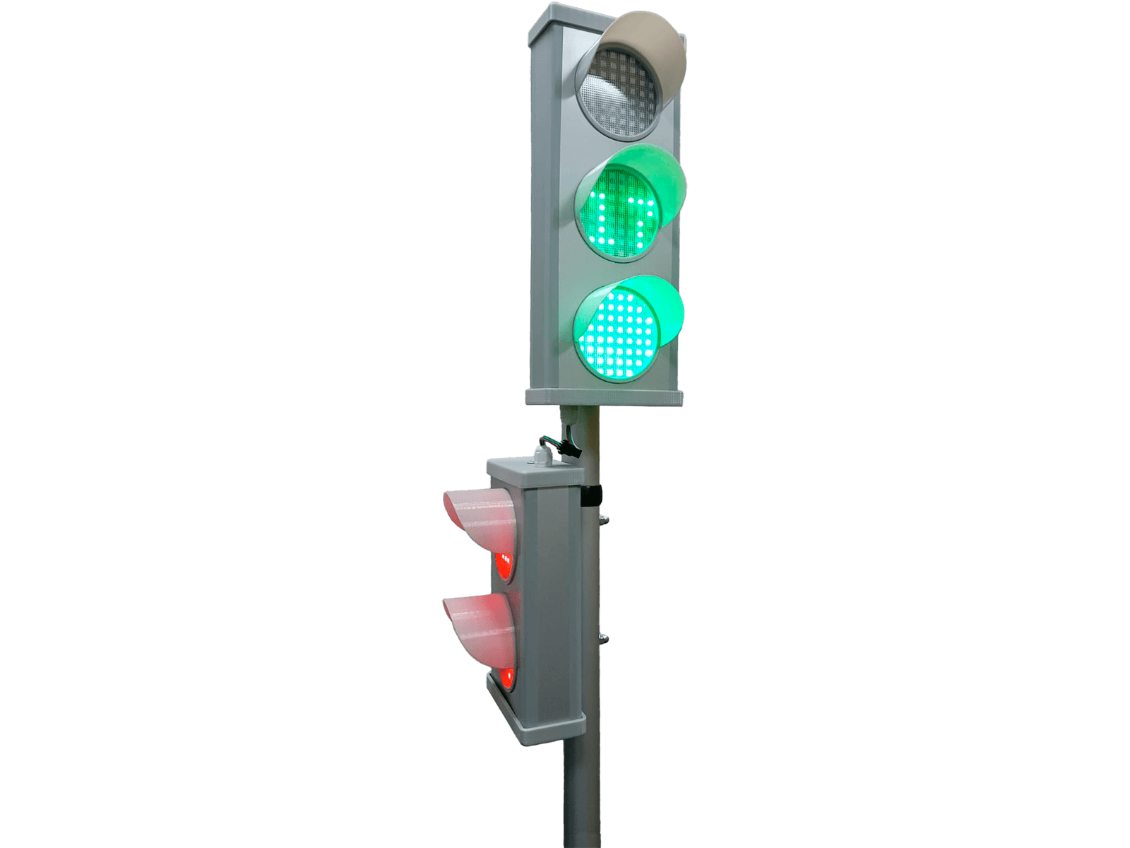 Модель светофора выполнена в размерах, пропорционально уменьшенных относительно размеров, принятых по ГОСТ Р 52282, с учетом антропометрических данных детей, обеспечивающих видимость, правильное восприятие учащимися и удобство эксплуатации.