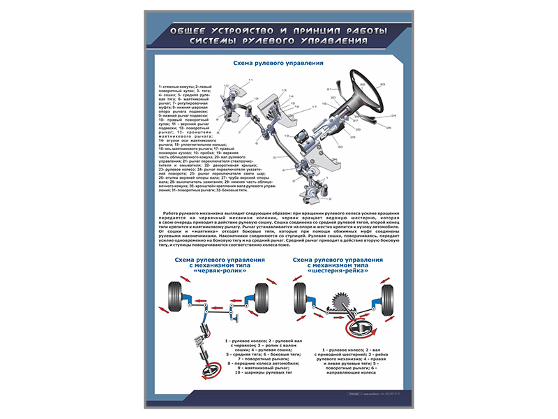 Стенд представляет собой информационную панель, на которой размещены сведения об общем устройстве и принципе работы системы рулевого управления (для категории "В", "С").