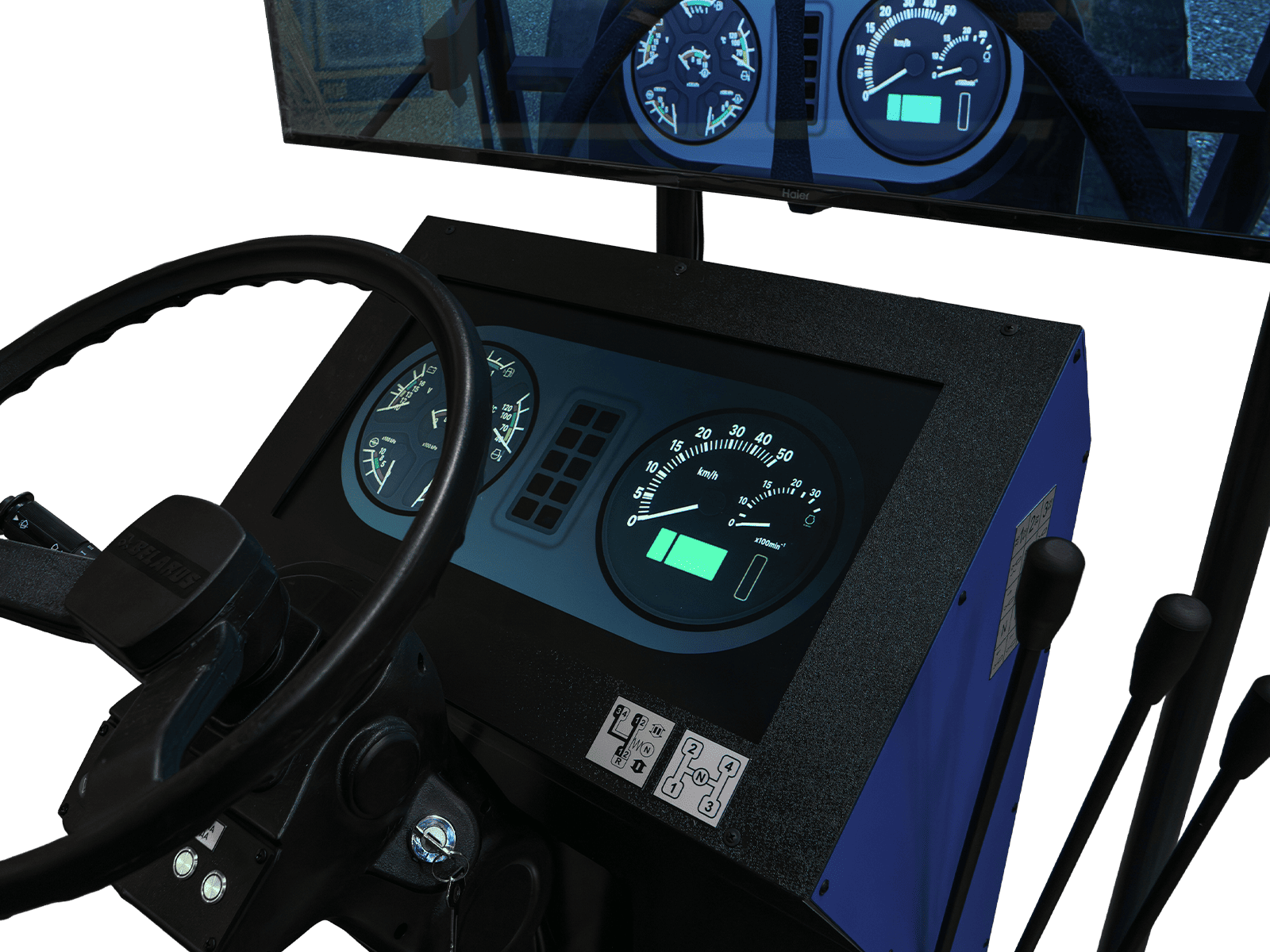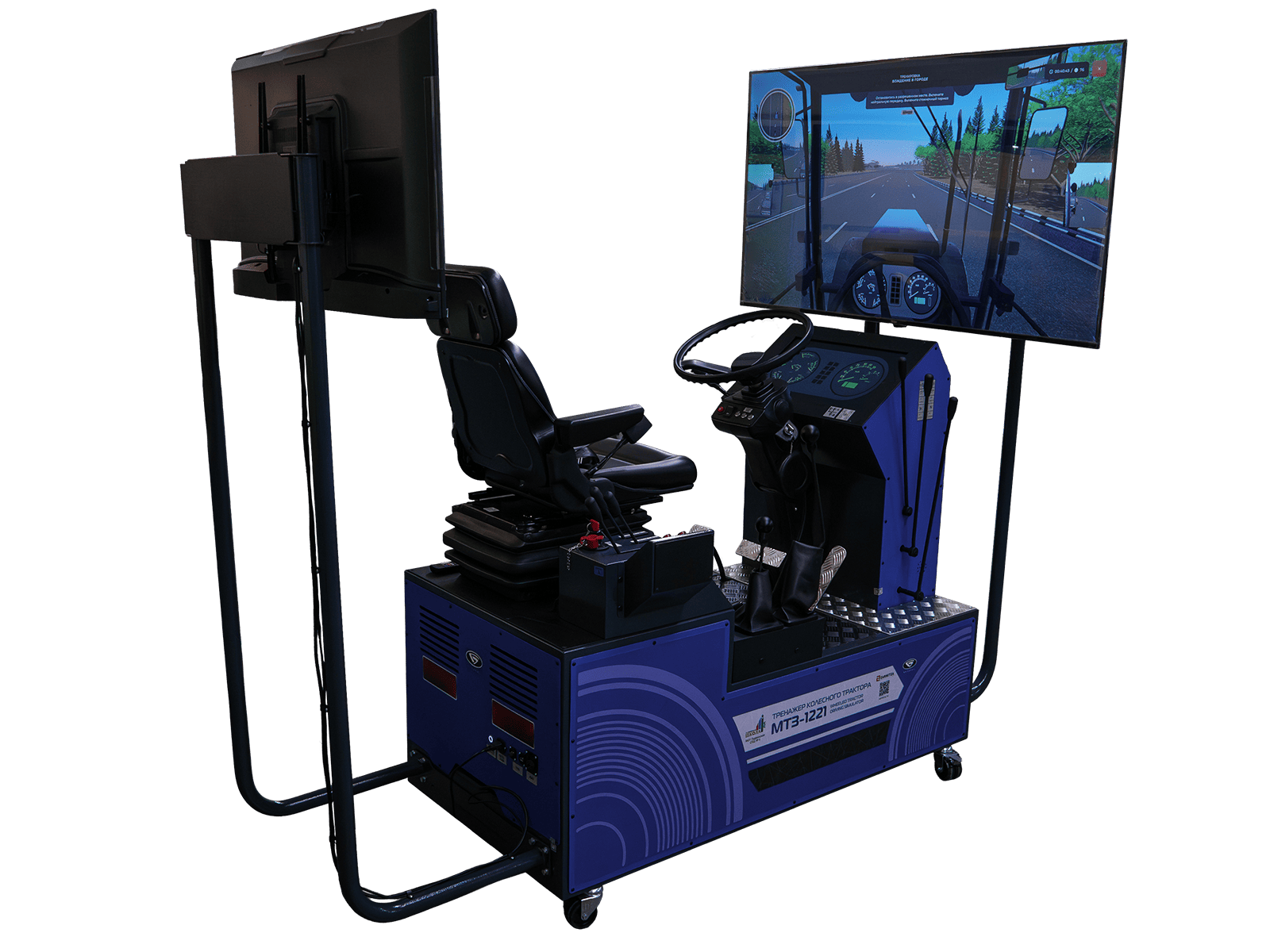 Тренажер предназначен для обучения вождению кандидатов в операторы сельскохозяйственных машин, обеспечивает максимальное приближение к условиям работы водителя реального трактора с навесным. Помогает выработать базовые физические навыки работы с органами управления сельскохозяйственного трактора: правильная работа рулем, педалями и рычагами управления, правильное руление, маневрирование с навесным сельскохозяйственным оборудованием, пользование контрольно-измерительными приборами и бортовым пультом управления трактора МТЗ-1221.