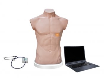 Тренажер предназначен для отработки базовых навыков физикального осмотра пациента (пальпация/аускультация). Предусмотрена возможность воспроизведения нормального и патологического дыхания, а также различных ритмов сердца.