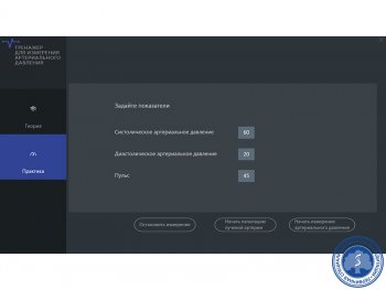 Тренажёр представляет собой модель руки на подставке и имитатор сфигмоманометра для измерения артериального давления.