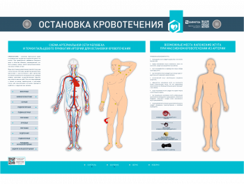 Электрифицированный стенд-тренажер представляет собой информационную панель с комбинированной световой индикацией. На стенде-тренажере изображена артериальная сеть человека с обозначением мест возможного кровотечения вследствие различных травм, точек пережатия артерий для быстрой остановки кровотечения и областей наложения жгутов. В конструкцию учебного оборудования интегрированы высокочувствительные сенсоры для управления стендом при помощи интерактивного воздействия приемо-передающих устройств во время обучающего процесса и проведения тестовых заданий.