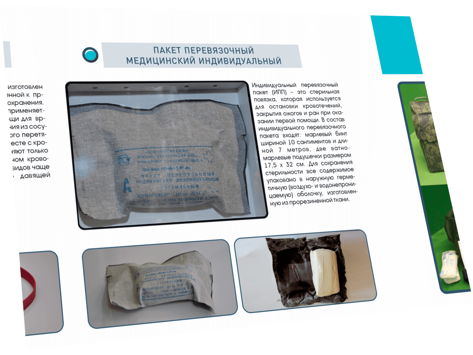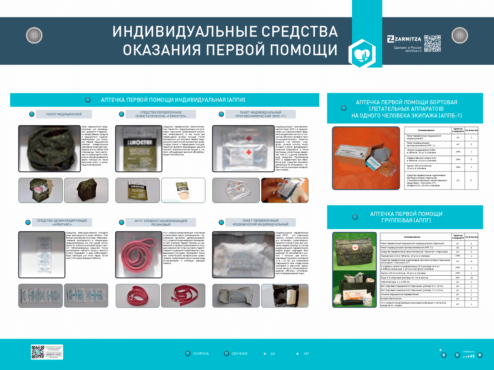 Интерактивный стенд "Индивидуальные средства оказания первой помощи пострадавшим" с натурными образцами