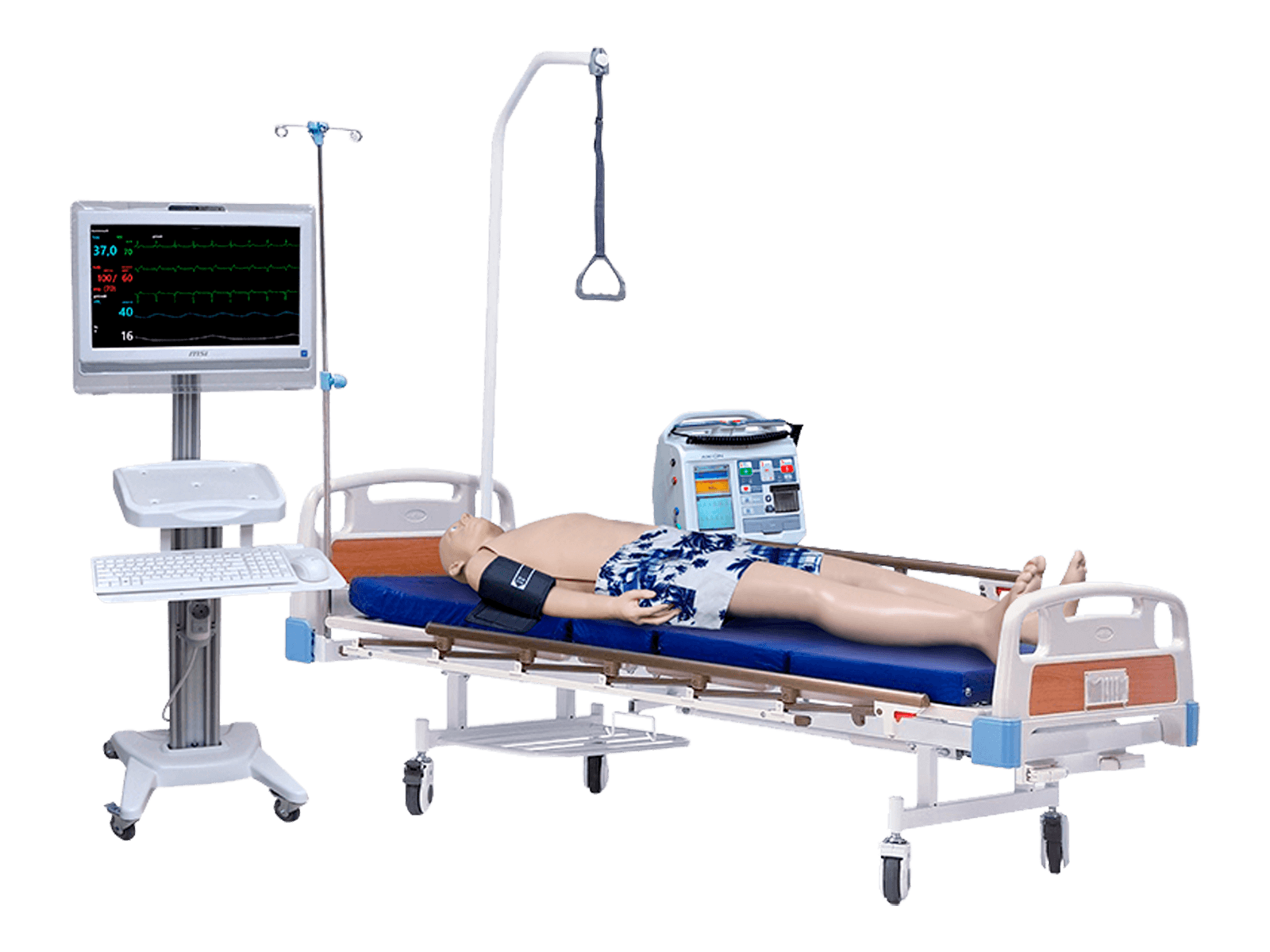 - отображение заданной электрокардиограммы, ЧСС, ЧДД, SP02, АД, температуры тела на медицинское оборудование;