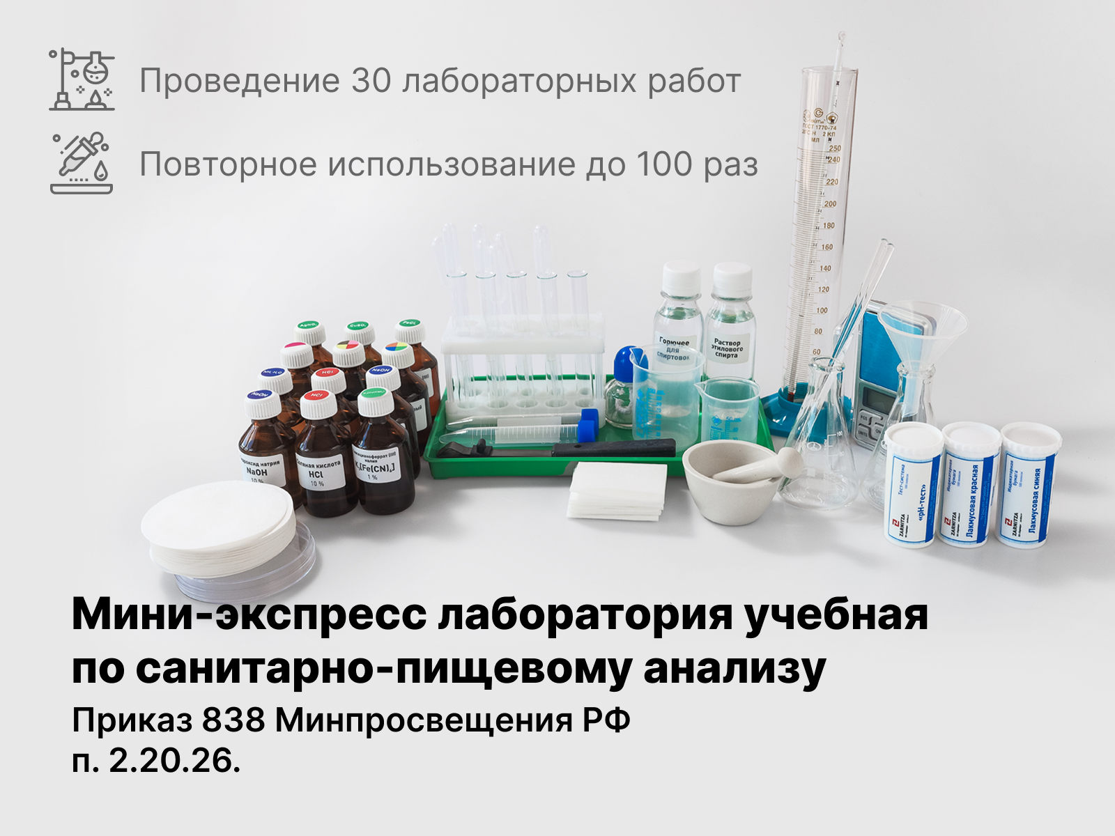 Мини-экспресс лаборатория по санитарно-пищевому анализу представляет собой специализированный комплект оборудования и расходных материалов, предназначенный для оперативного контроля качества пищи и условий приготовления в учреждениях общественного питания.