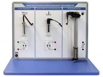 - Модуль для изучения системы определения уровня жидкостей. Позволяет изучать датчик уровня масла с нитью накала, датчик уровня охлаждающей жидкости с электродами, датчик уровня топлива.