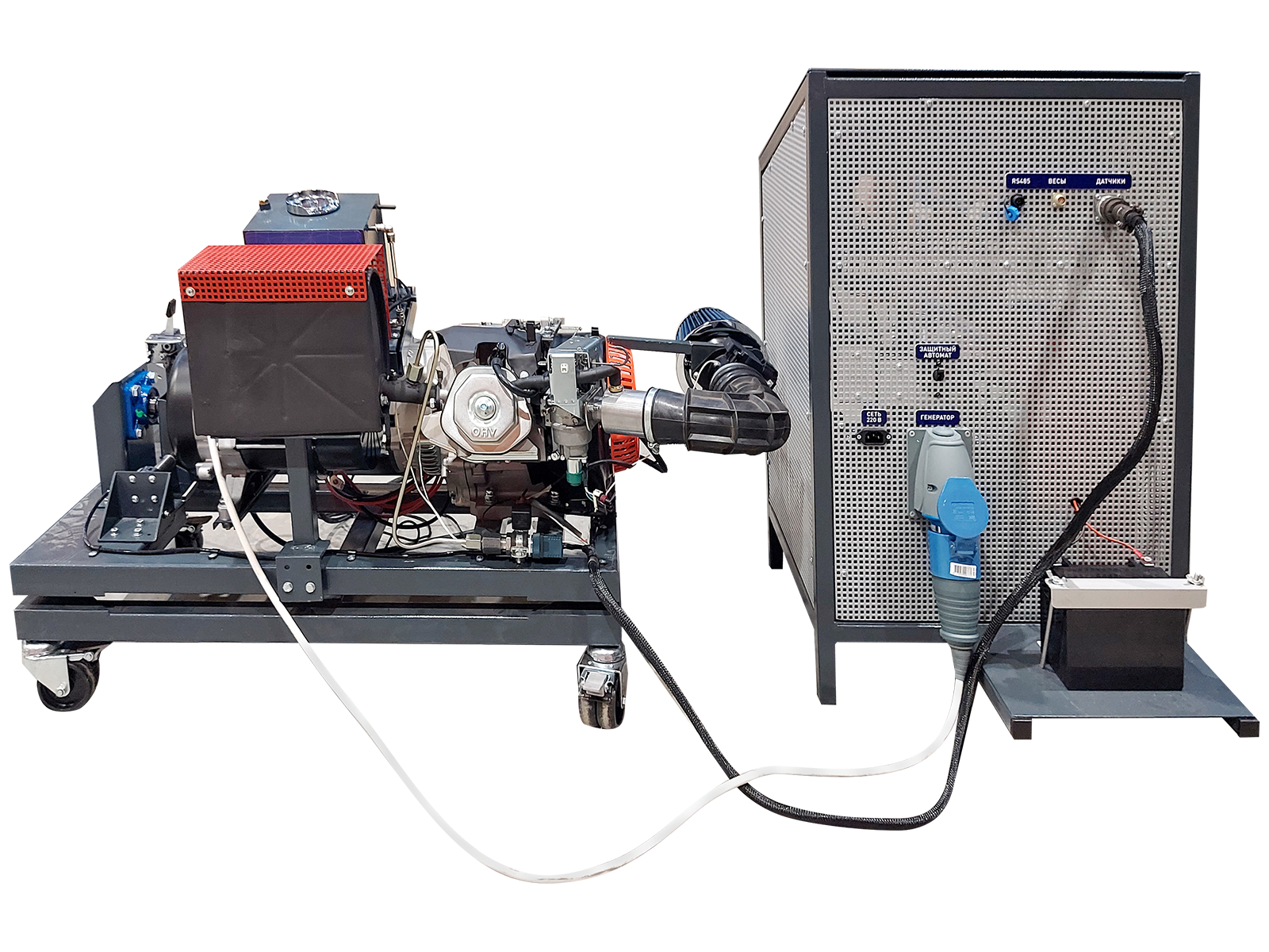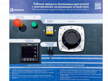 Комплект учебно-лабораторного оборудования "Рабочие процессы бензиновых двигателей" (с электрическим нагружающим устройством) (далее стенд) предназначен для изучения устройства и принципа работы, методов испытания двигателей внутреннего сгорания и измерительной аппаратуры, методов оценки показателей экономичности, методов термометрирования, методов оценки параметров устройств газообмена, основных принципов и правил проведения технического обслуживания.