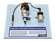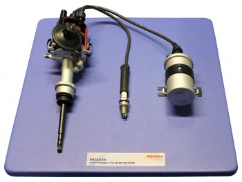 Учебное оборудование представляет собой модель системы зажигания транспортного средства категории "B" на подставке.