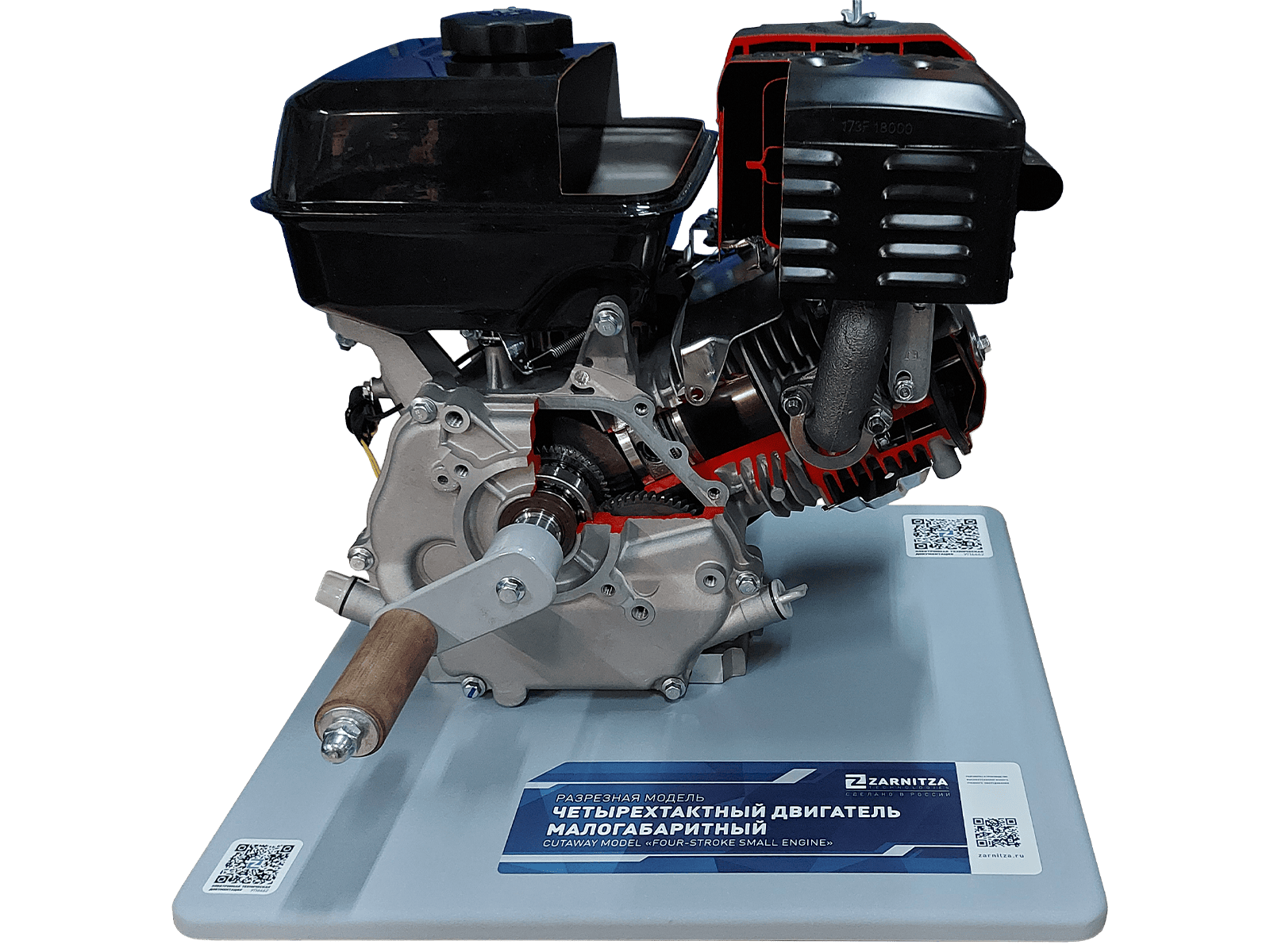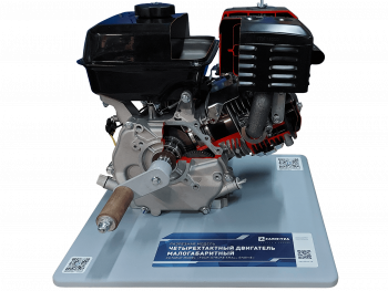 Разрезная модель "Четырехтактный двигатель малогабаритный" предназначен для изучения конструкции, назначения, принципов действия основных узлов и агрегатов двигателя.