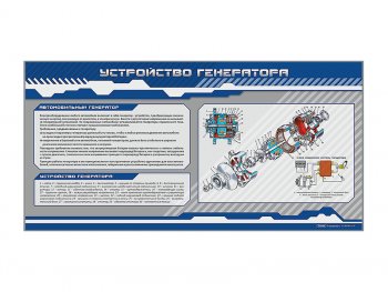 Стенд представляет собой информационную панель, на которой размещены сведения об общем устройстве и принципе работы генератора транспортных средств.