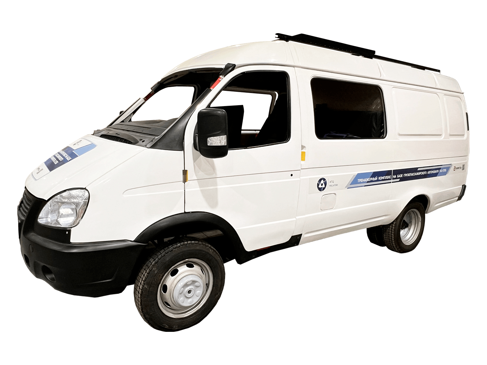 Многофункциональный учебно-тренажерный комплекс представляет собой комплект взаимосвязанного оборудования, предназначенного для обучения сотрудников спасательных подразделений МЧС методам оказания помощи лицам, пострадавшим в результате дорожно-транспортных происшествий. Благодаря своей конструктивной особенности и комплектации тренажер позволяет проводить многократные тренировки по извлечению пострадавших с использованием аварийно-спасательного инструмента, а также улучшать психофизиологическую подготовку сотрудников. Тренажер изготовлен на базе автомобиля ГАЗ-2705 (фургон цельнометаллический грузопассажирский на 7 мест), стоящего на колесах, с возможностью перемещения, оснащенного комплектом технологического оборудования. Тренажер снабжен сменными запасными частями, позволяющими без усилий и в короткие сроки привести тренажер в состояние готовности для проведения упражнений, и манекенами для наиболее полного охвата спектра реанимационного воздействия на пострадавших. Комплекс снабжен системой светошумового воздействия и системой визуализации, осуществляющей задымление салона автомобиля.