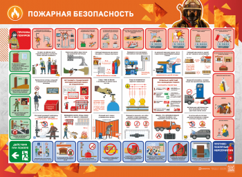 Стенд представляет собой информационную панель, на которой проиллюстрированы правила пожарной безопасности.