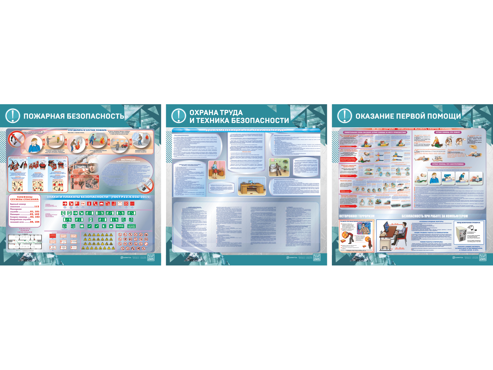 Стенд-уголок представляет собой совокупность трех информационных панелей, на первой из которых размещена информация о действиях в случае пожара, видах огнетушителей и приведении их в действие, а также знаках безопасности. На второй панели указаны основополагающие законодательные акты, на третьей — информация об универсальных методах оказания первой помощи на месте происшествия. На стенде-уголке расположено 4 "кармана" из ПВХ 0,8 мм формата А4.