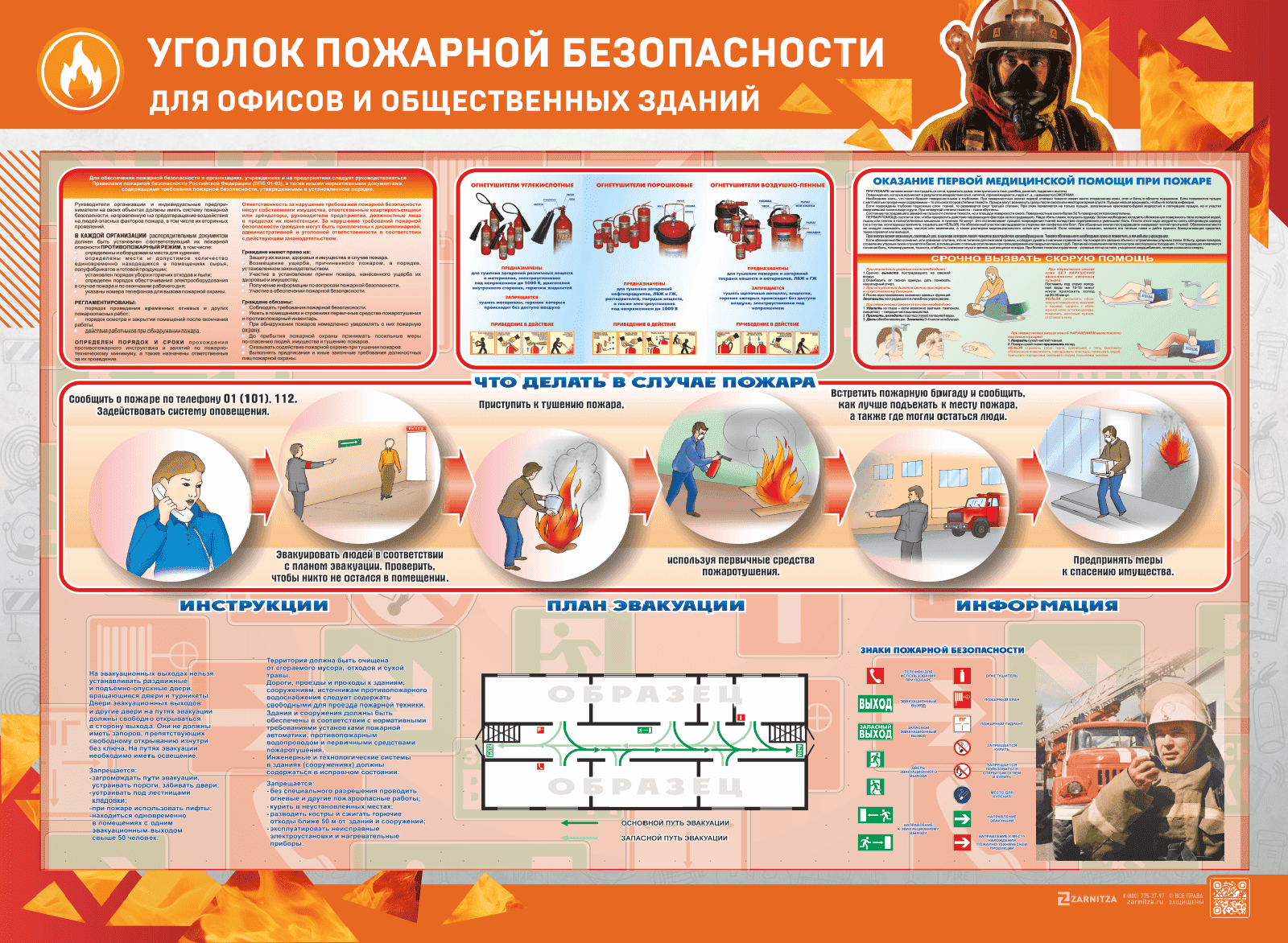 Стенд предназначен для ознакомления офисных сотрудников и посетителей общественных помещений с правилами пожарной безопасности, первичными средствами пожаротушения, действиями при пожаре, мероприятиями по оказанию первой помощи пострадавшим при пожаре, а также для формирования осознанного отношения к пожарной безопасности.