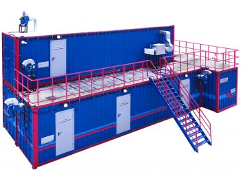 Модульные здания, собранные из одного и более блоков модулей (в основном из морских контейнеров). Как правило, представляют собой временные строения, для установки которых не требуется усиленный фундамент (преимущественно до трёх этажей). Изготавливаются в различном исполнении для любых климатических условий, отвечают всем пожарным и санитарным требованиям, имеют систему отопления и вентиляции, сантехнику и электрооборудование.