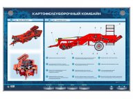 Стенд представляет собой полнокомплектную двухрядную картофелепосадочную машину, адаптированную для учебного процесса. С целью обеспечения наглядности функционирования и работы стенд оборудован электромеханическим приводом подвижных элементов. Управление стендом осуществляется с блока управления. Картофелепосадочная машина установлена на металлическом основании, окрашенном полимерной краской.