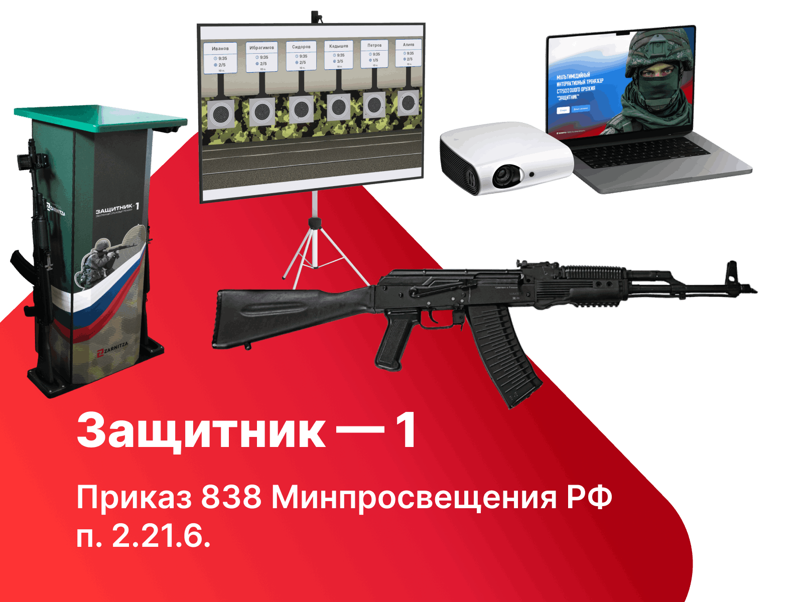 Основное демонстрационное оборудование для кабинета ОБЗР в соответствии с 838-м приказом Министерства просвещения РФ "Защитник‑1". Данный аппаратно-программный комплекс разработан для обучения начальным навыкам практической стрелковой подготовки с использованием образцов оружия, полностью сохраняющих массогабаритные характеристики и принцип работы ударно-спускового механизма боевых аналогов, что обеспечивает и ВОЗМОЖНОСТЬ ВЕДЕНИЯ АВТОМАТИЧЕСКОЙ СТРЕЛЬБЫ.
