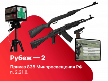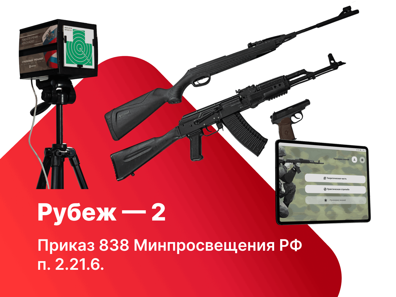Стрелковый тренажер "Рубеж-2" – аппаратно-программный комплекс практической стрелковой подготовки на базе массогабаритного автомата Калашникова, пистолета Макарова и пневматической винтовки.