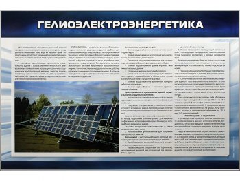 Стенд представляет собой информационную панель, на которой размещена обучающая информация, дающая представление об основных понятиях по теме "Гелиоэлектроэнергетика".