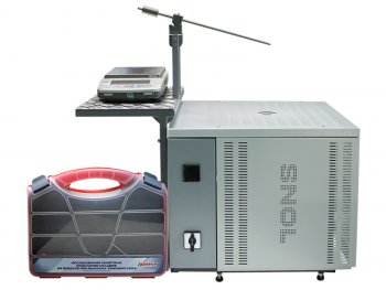 Комплект настольного исполнения представляет собой шахтную печь с установленными на ней аналитическими весами.