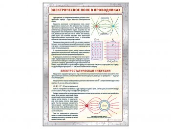 Стенд представляет собой информационную панель, на которой изображено описание основных понятий электрического поля в проводниках.