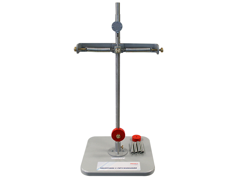 Оборудование конструктивно представляет собой основание с закрепленной вертикальной стойкой, на которой установлено крепление для подпружиненного маятника.