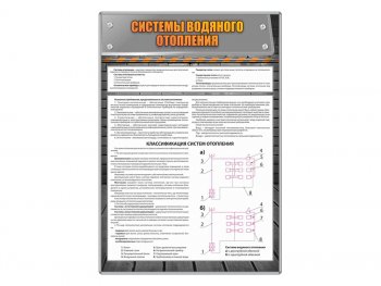 Стенд представляет собой информационную панель, на которой размещены общие сведения о системе водяного отопления.